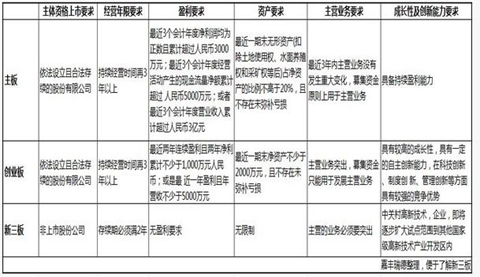主板创业板及新三板上市条件对比